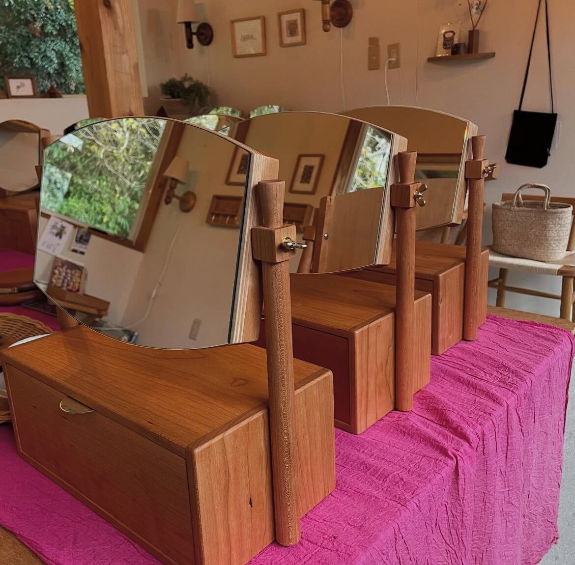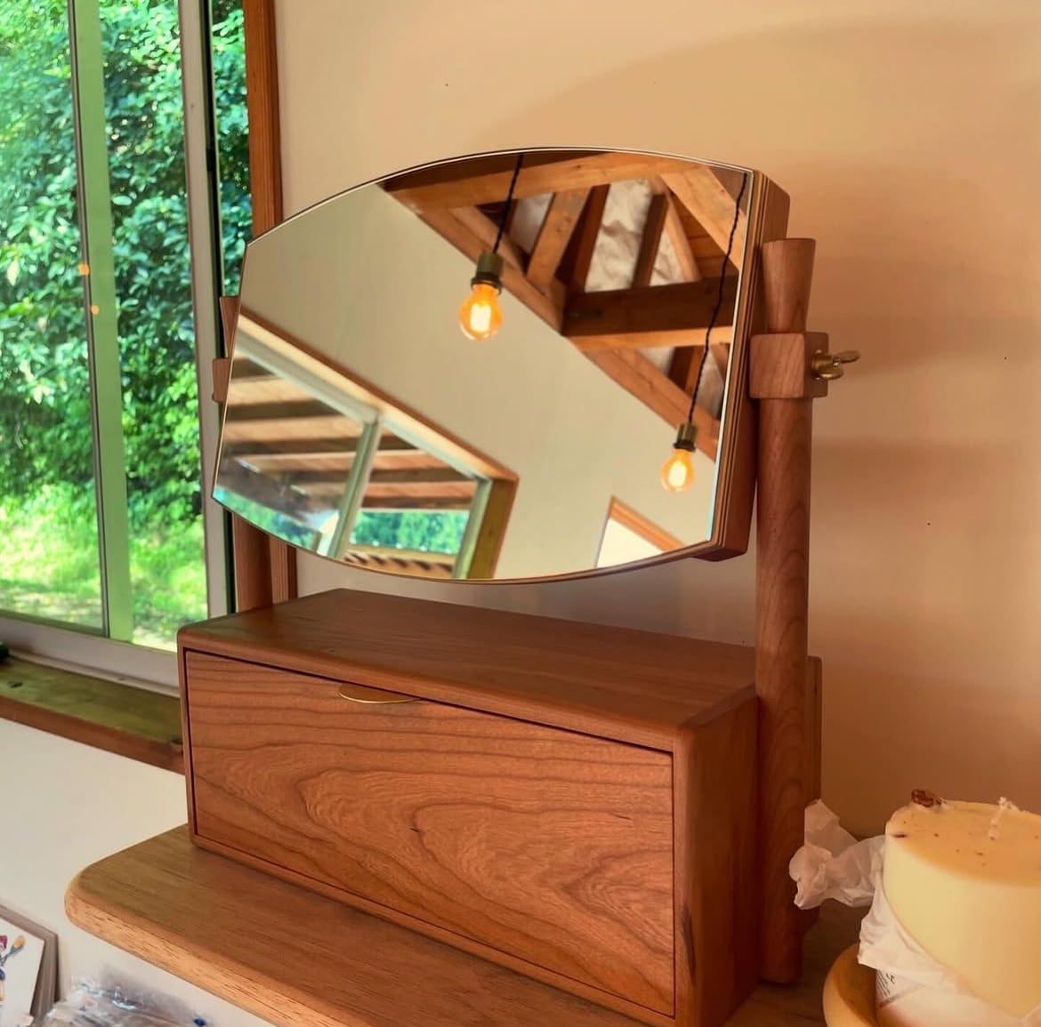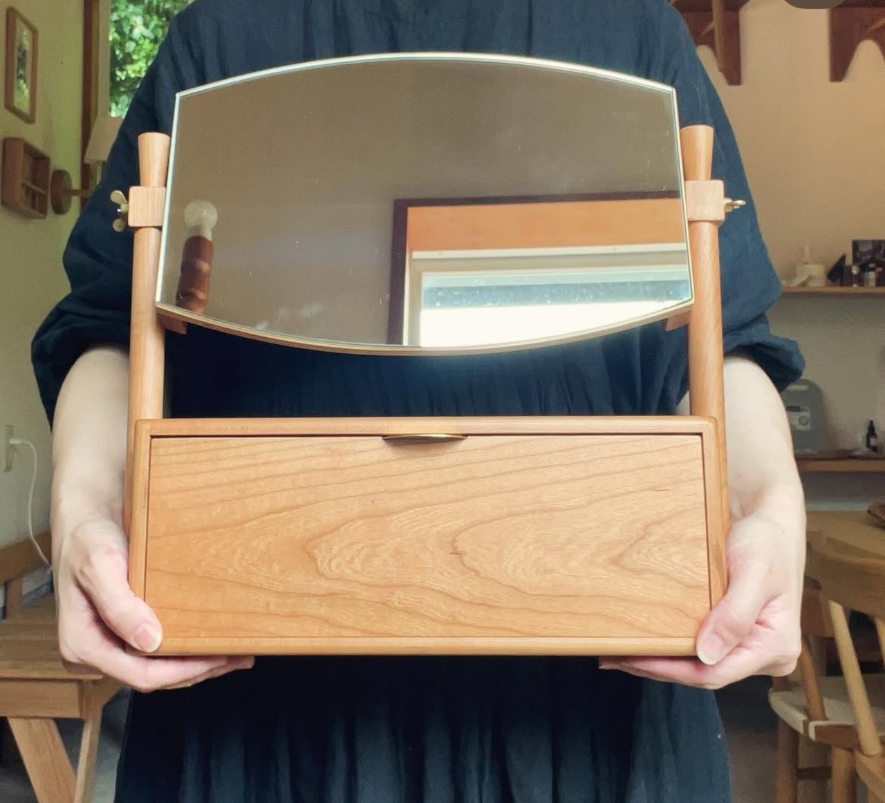 オレンジっぽいチェリー材の色味と真鍮の金具が