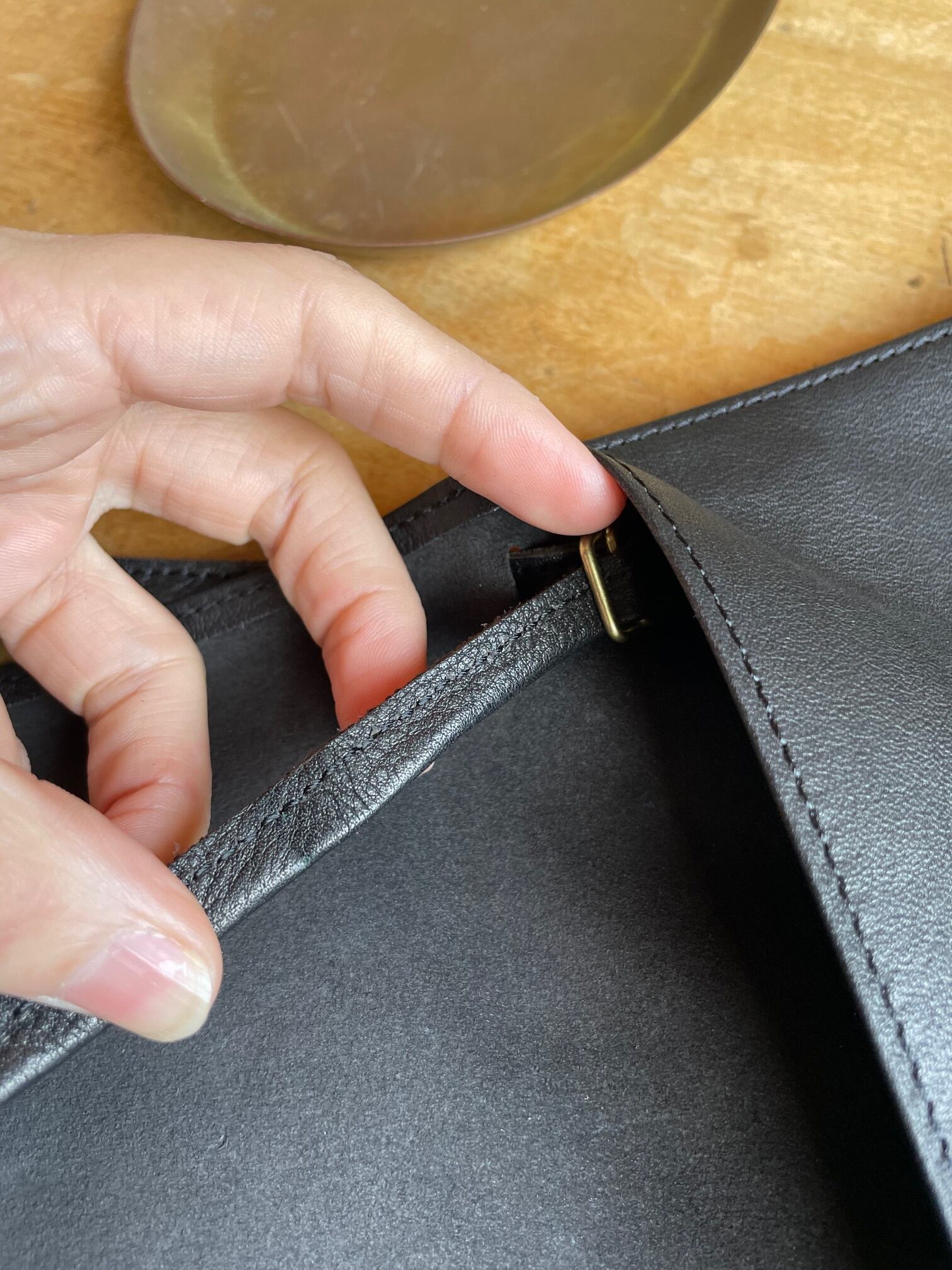 またマチはありませんが縦長デザインのため、長財布も入ります。